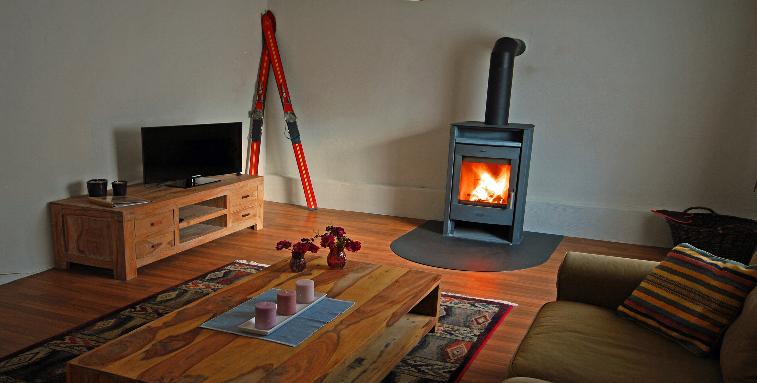 Fewo Reuterwanne, Kaminofen in 'open plan' Wohnzimmer